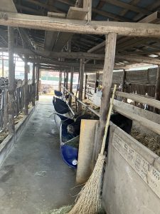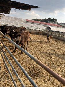 写真は自宅横の繁殖牛舎で父親の代はここで肥育をしていたそうです。最大で120頭肥育したこともありますが代替わりしてから繁殖を始めるため肥育を50頭位まで減らした時期もあったみたいです。