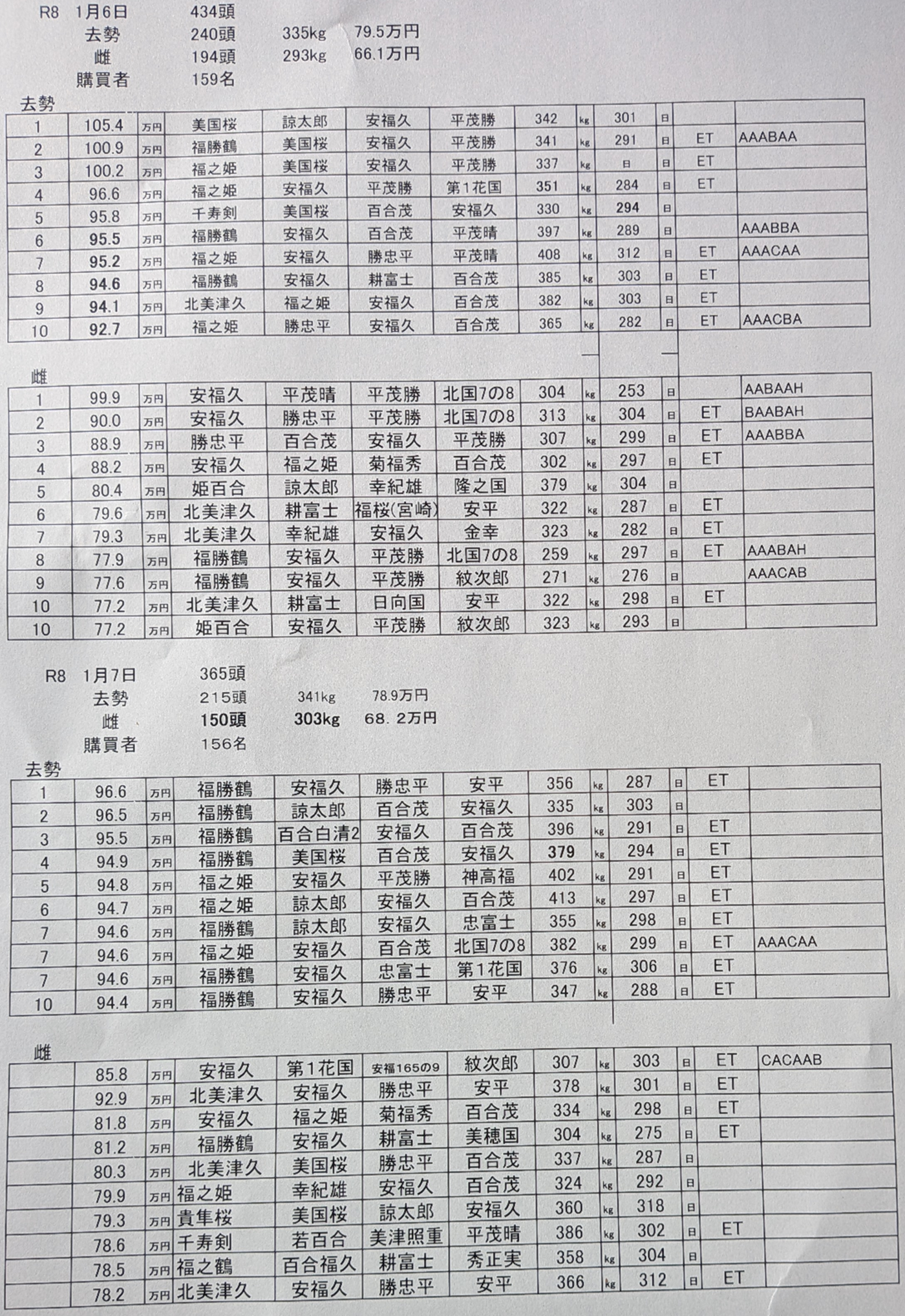 令和8年1月7日 矢板市場高値牛