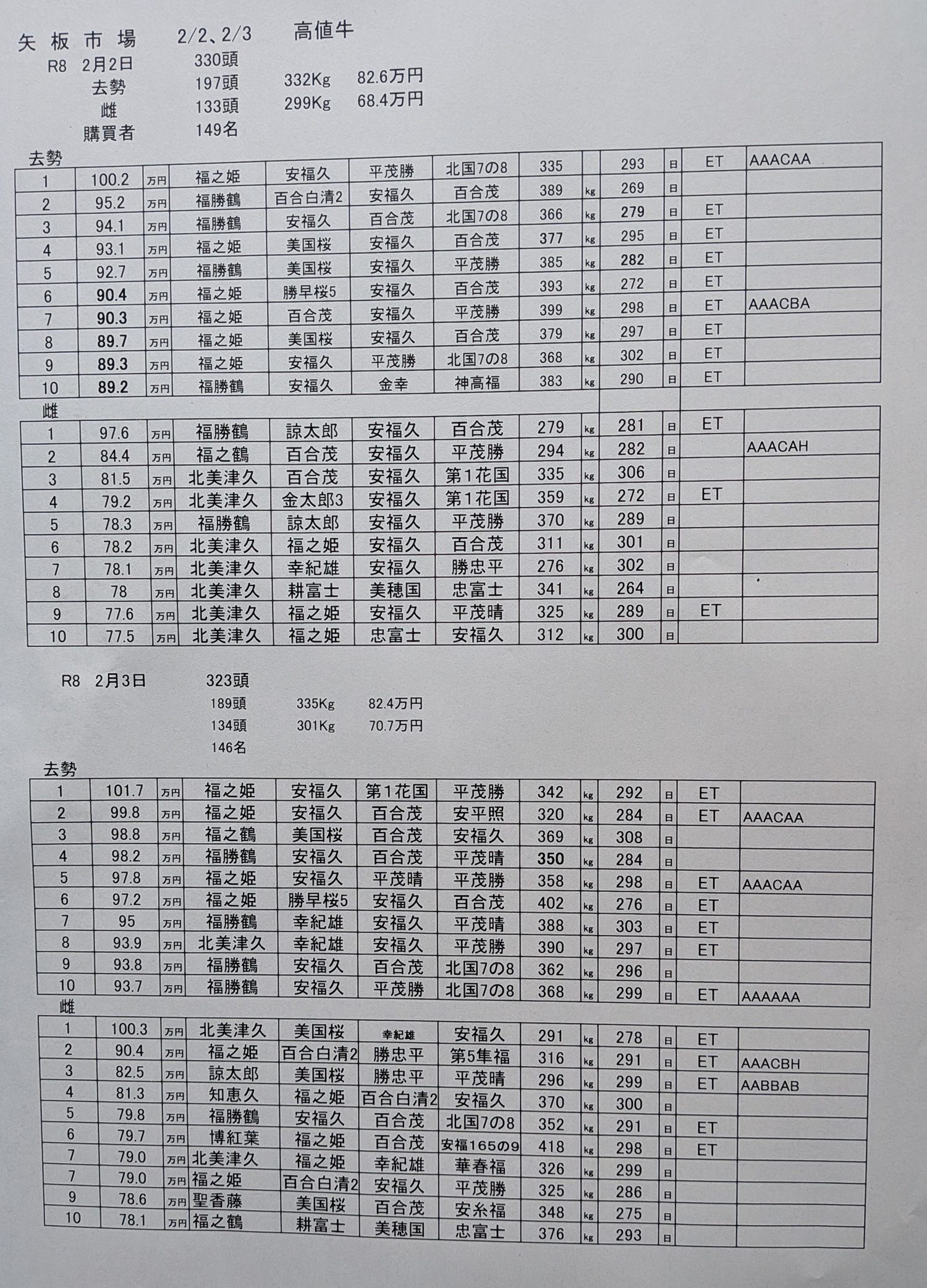 令和5年 7月 4日 矢板市場高値牛 2日目